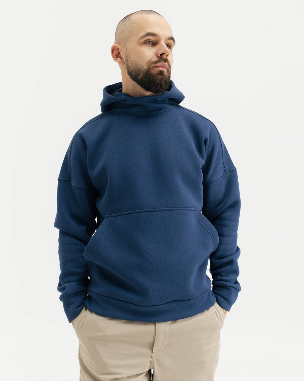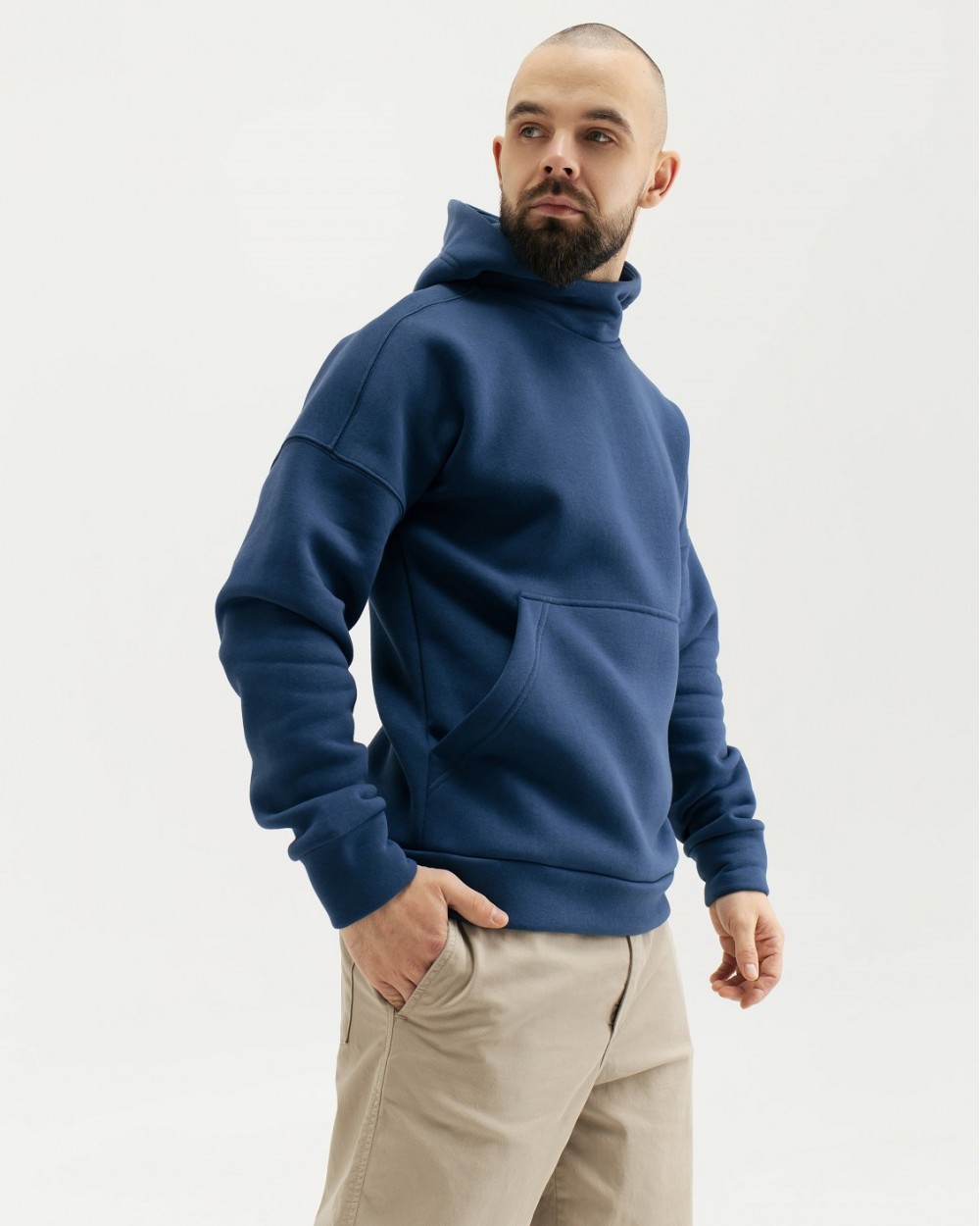 Однотонне чоловіче тепле худі з начісом. Модель вільного крою, з капюшоном та кишенею-кенгуру спереду. Худі виготовлене з м'якого, приємного до тіла трикотажу, який має гарну зносостійкість і довгий термін експлуатації, стійкий до деформації, поверхня не скочується, повітропроникний - дозволяє тілу дихати.