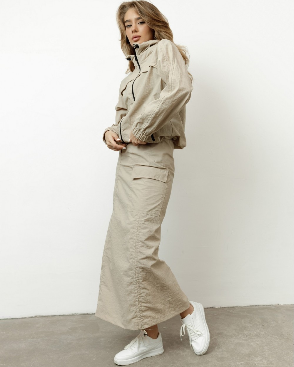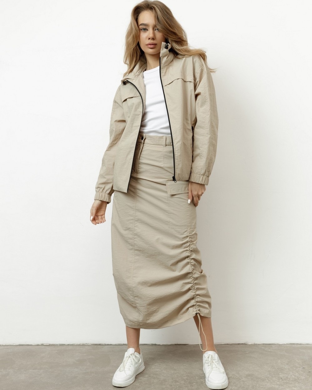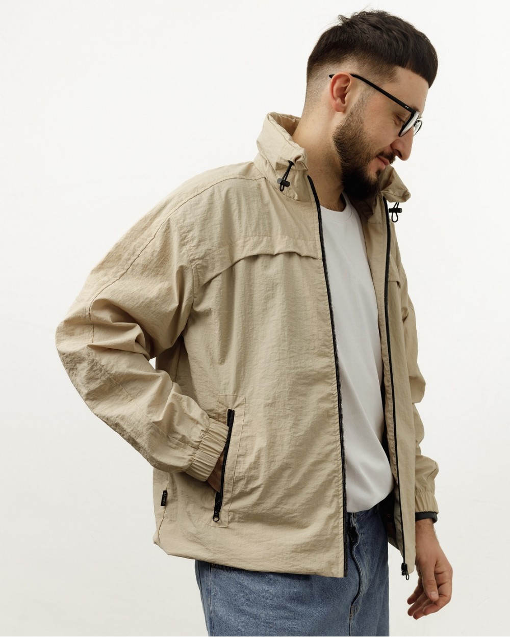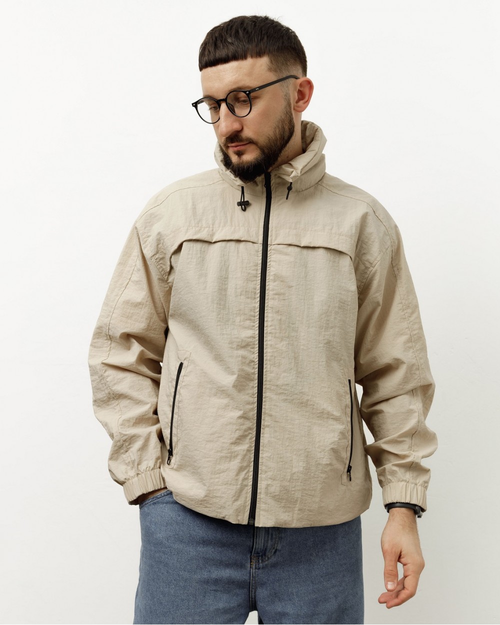 Унісекс куртка вільного крою з капюшоном - чудово підійде на весну і літо. Виготовлена із плащівки "жатки". Завдяки складу із 100% нейлону куртка має високу зносостійкість та при цьому є легкою. Відштовхує воду та дуже швидко висихає. Виріб має підкладку із сіточки, що сприяє повітропроникненню під час носіння. По низу куртки є "куліска", з допомогою якої можна регулювати довжину куртки та захиститись від вітру. Капюшон можна сховати у потаємну кишеню на комірі куртки.
