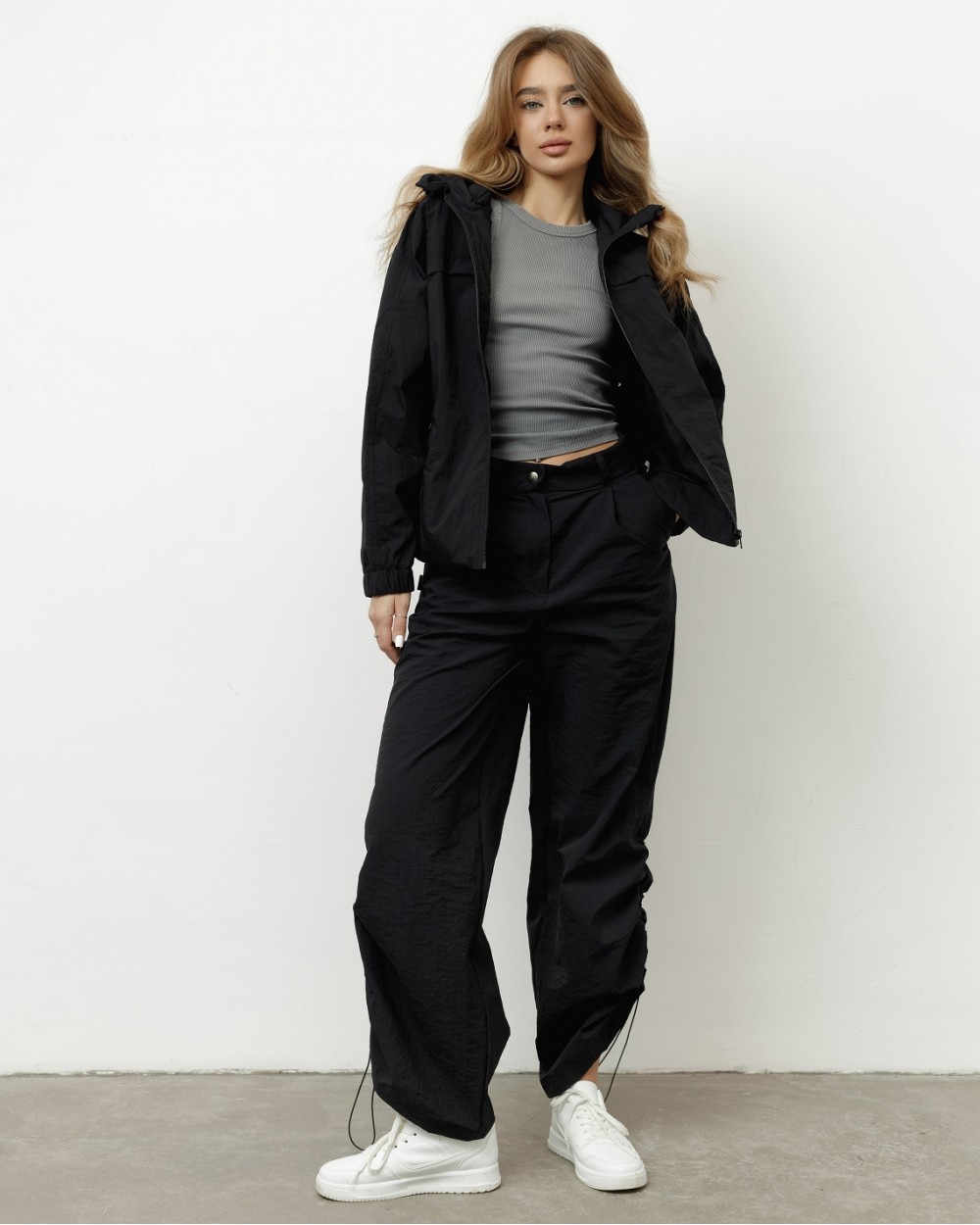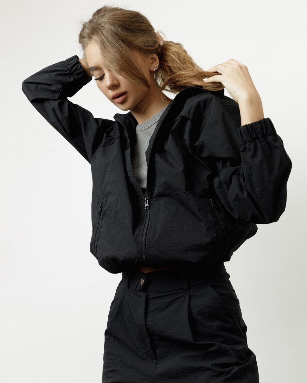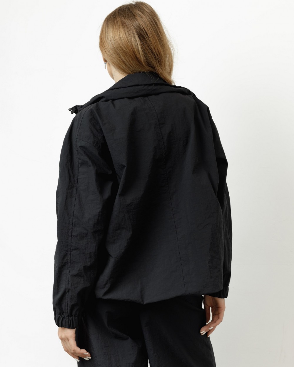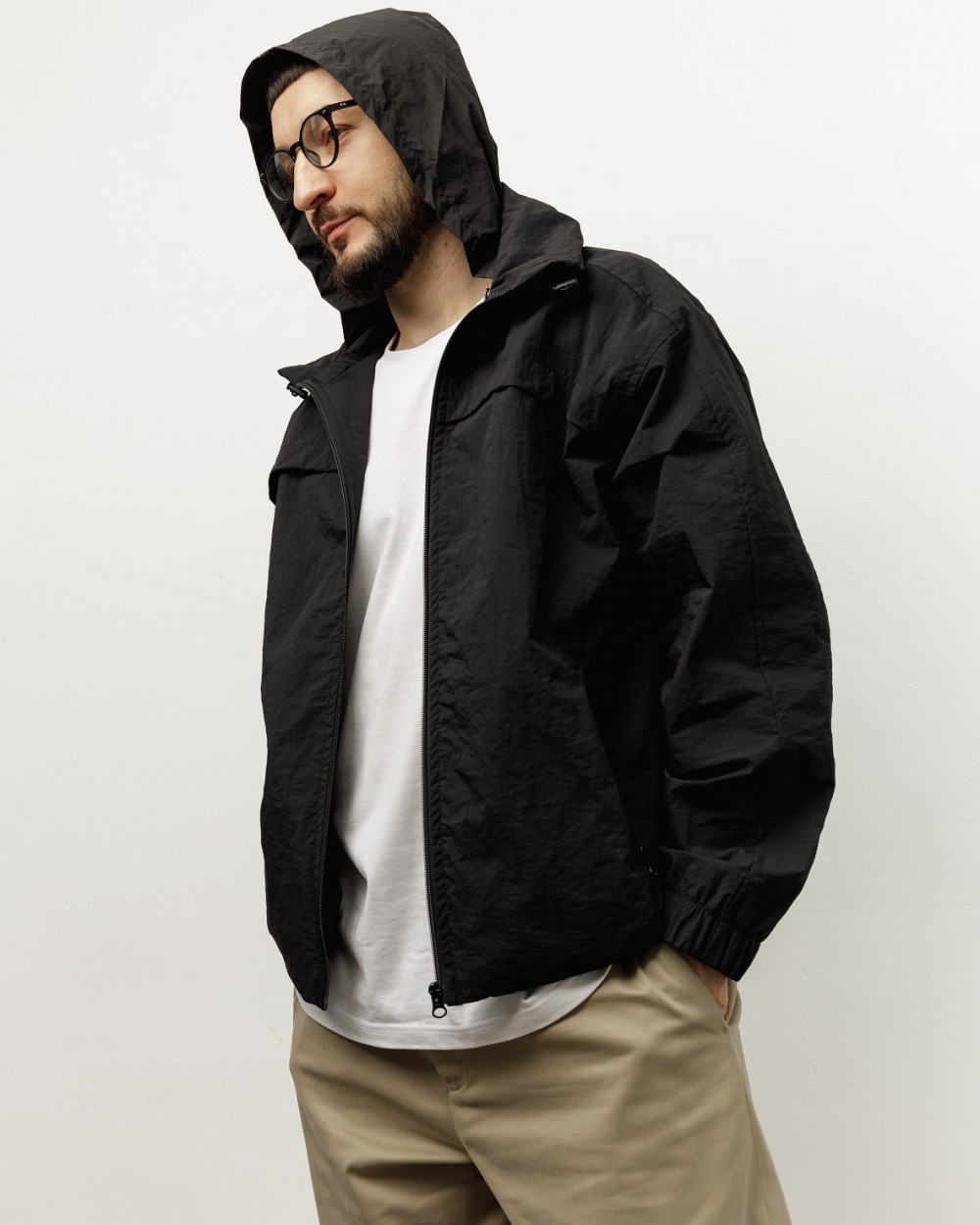 Унісекс куртка вільного крою з капюшоном - чудово підійде на весну і літо. Виготовлена із плащівки "жатки". Завдяки складу із 100% нейлону куртка має високу зносостійкість та при цьому є легкою. Відштовхує воду та дуже швидко висихає. Виріб має підкладку із сіточки, що сприяє повітропроникненню під час носіння. По низу куртки є "куліска", з допомогою якої можна регулювати довжину куртки та захиститись від вітру. Капюшон можна сховати у потаємну кишеню на комірі куртки.