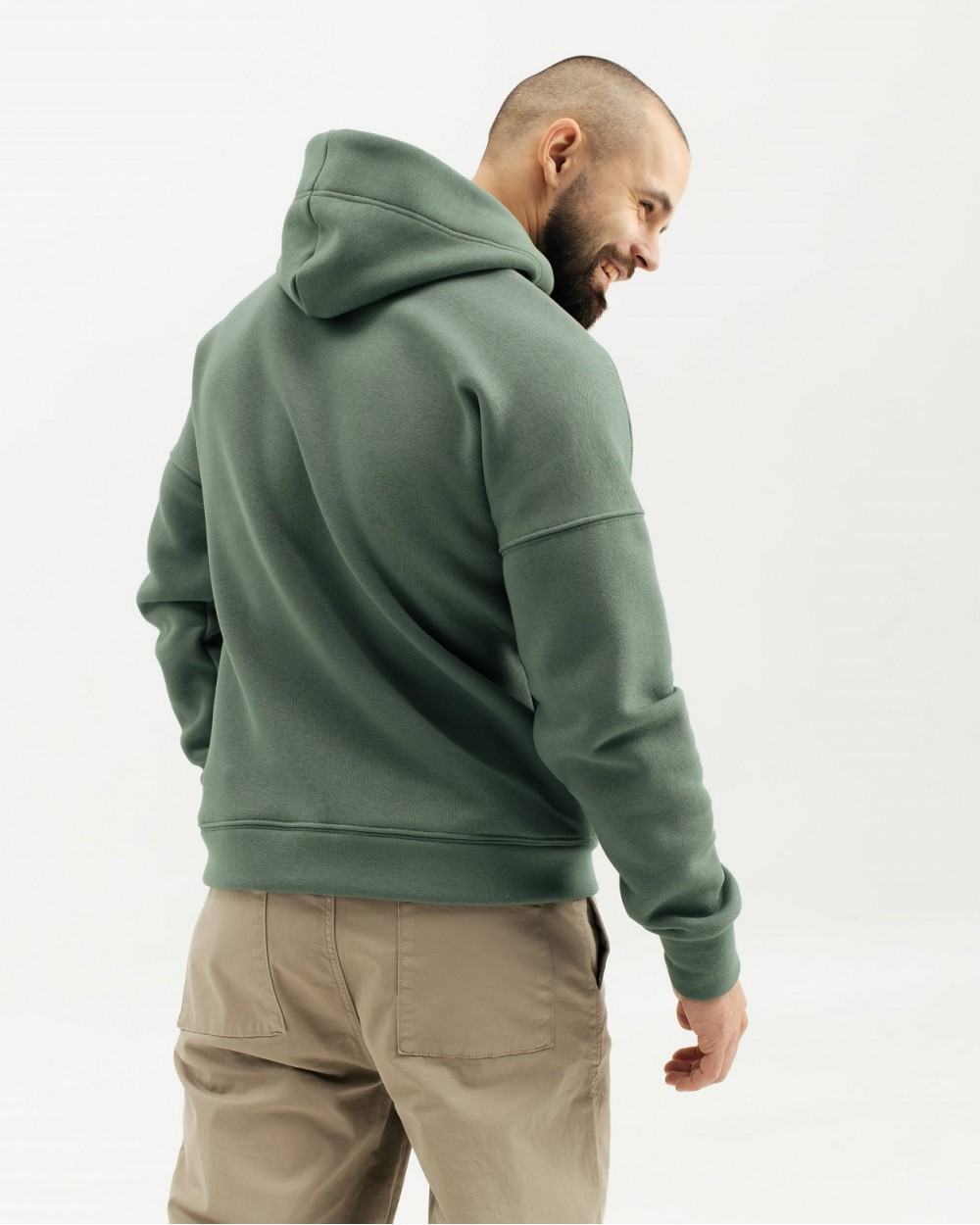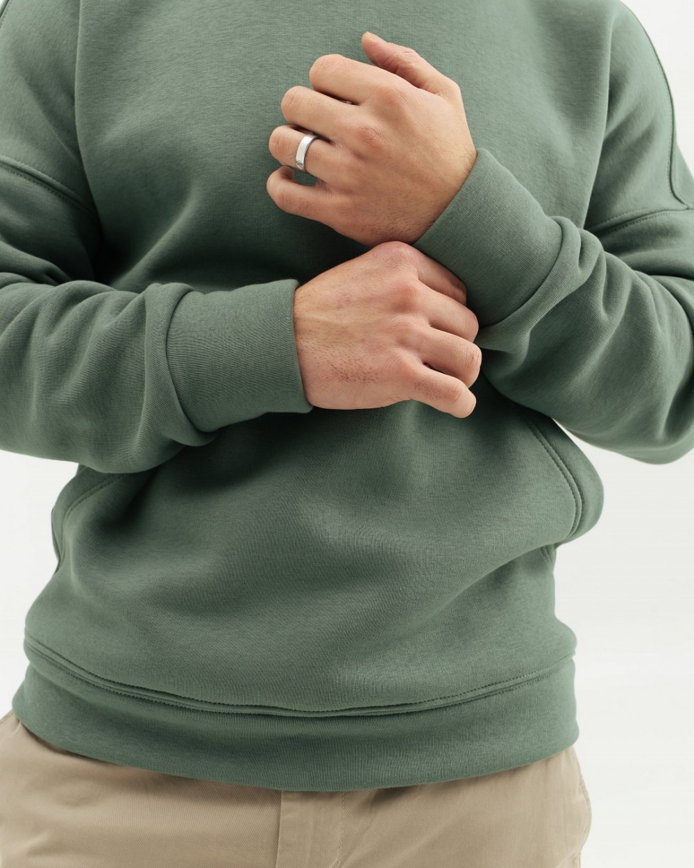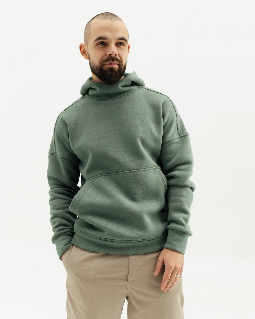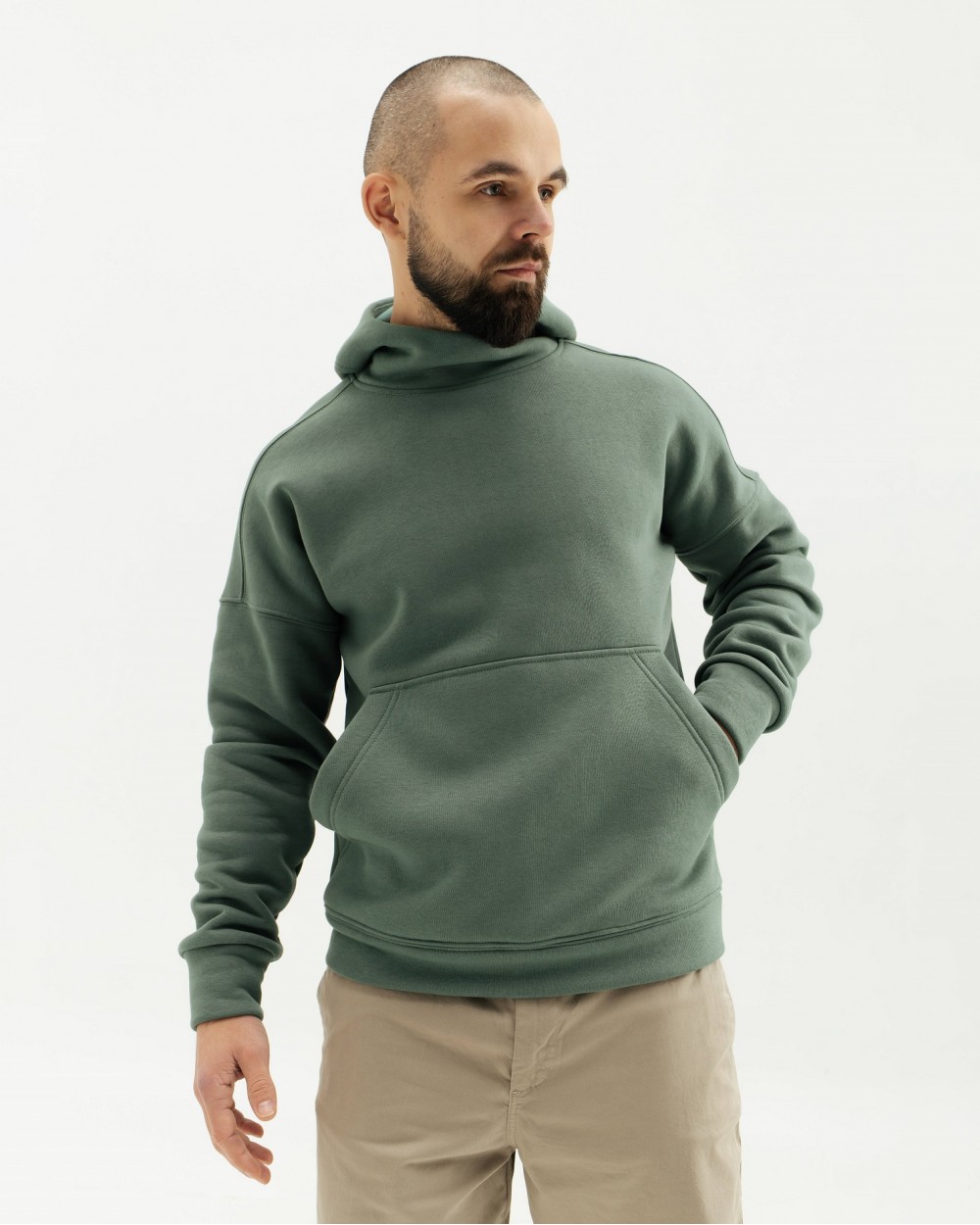 Men's plain warm hoodie with fleece. Loose-fitting model, with a hood and a kangaroo pocket on the front. The hoodie is made of soft, body-pleasing knitwear, which has good wear resistance and long service life, is resistant to deformation, the surface does not roll, is breathable - allows the body to breathe.