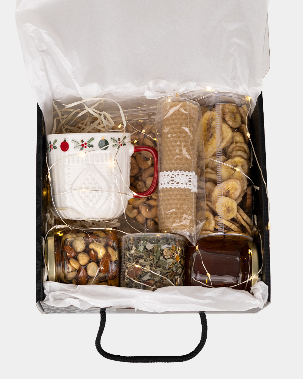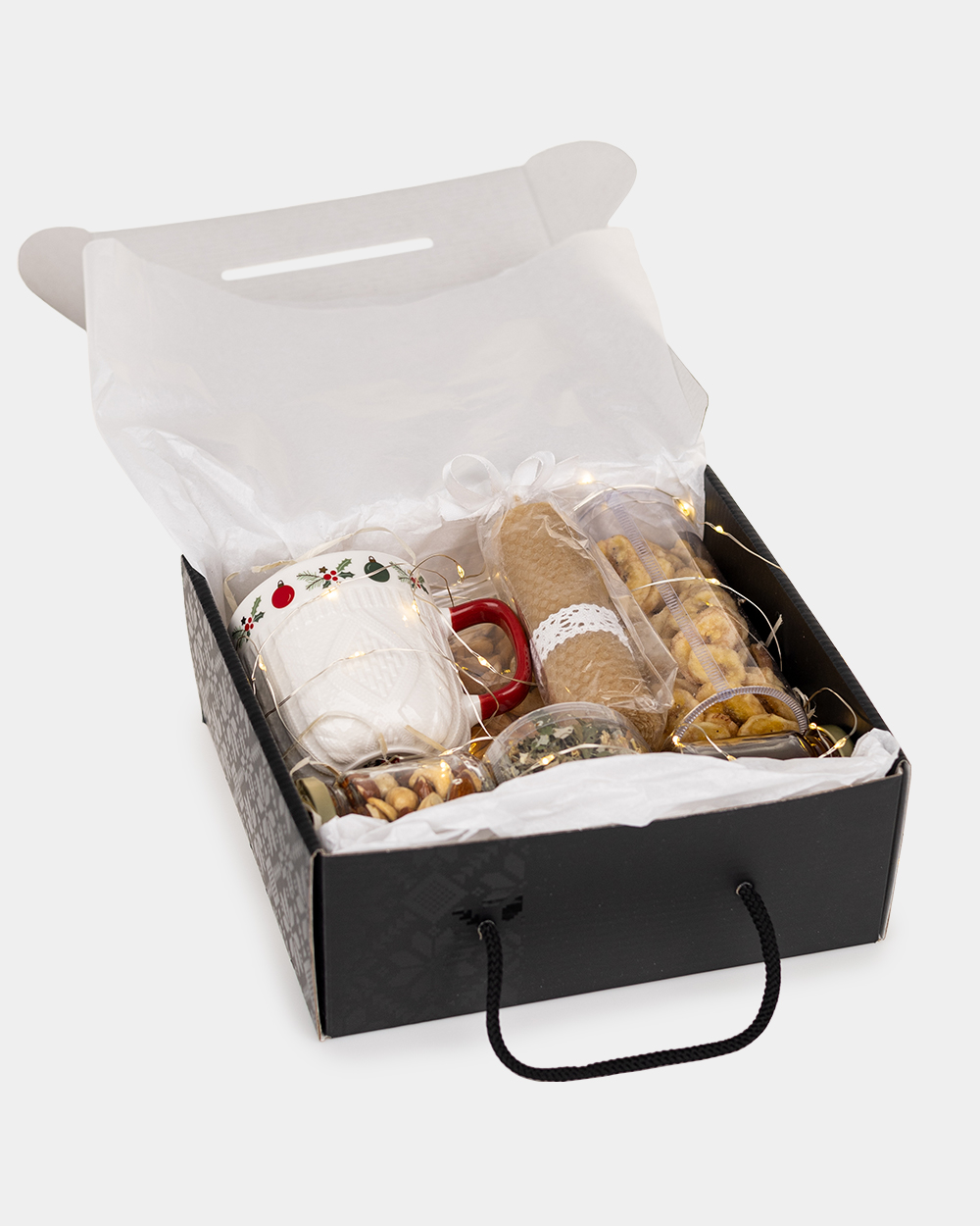 Свята - це час тепла, затишку та щирих побажань. Наш новорічний бокс створений саме для того, щоб подарувати приємні емоції вашим колегам, партнерам або близьким. Це стильний і турботливий подарунок, який поєднує смак, аромат і атмосферу зимових свят. Ідеальний варіант для корпоративних привітань або як знак вдячності від компанії.