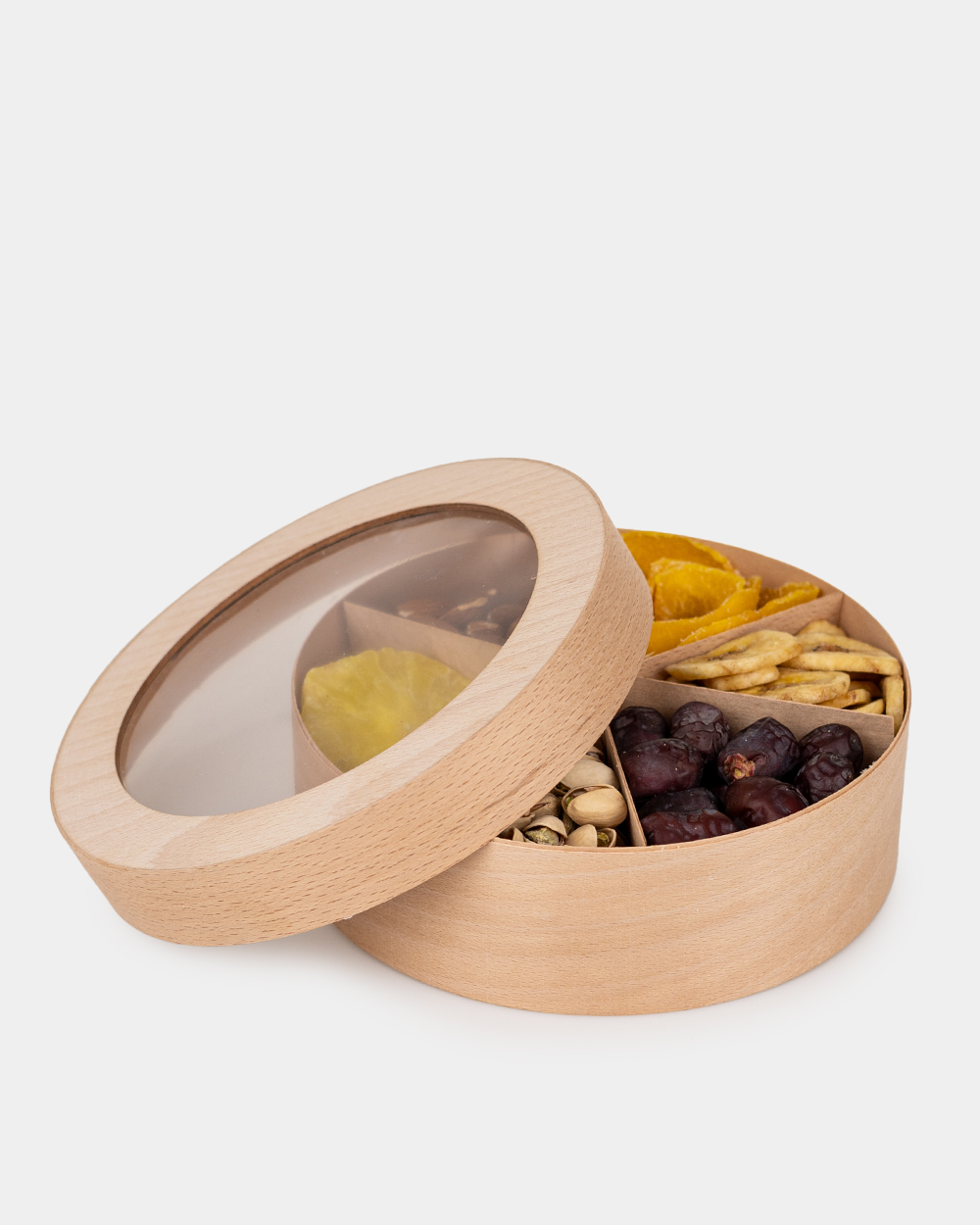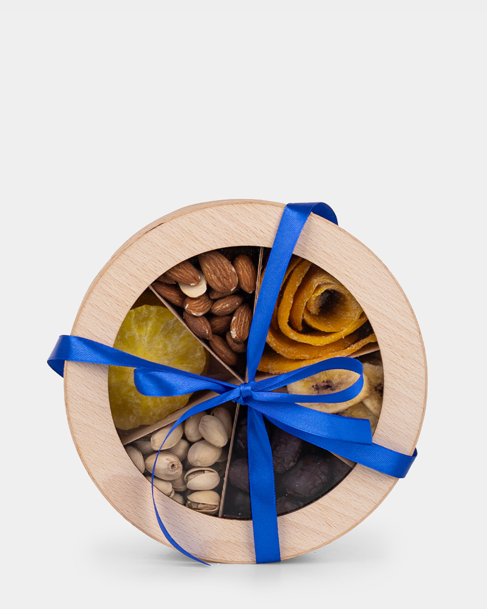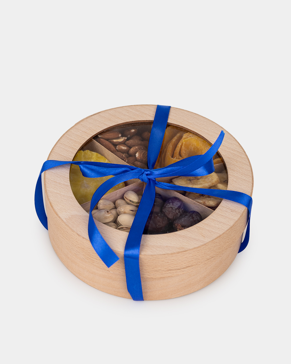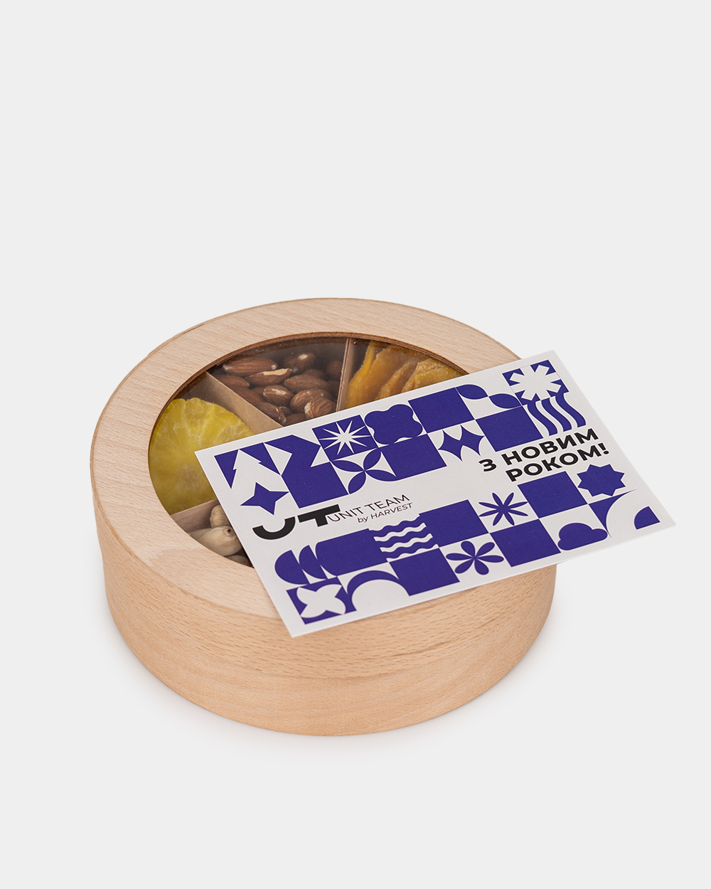 Стильний набір із горіхами та сухофруктами - ідеальний корпоративний подарунок для працівників, партнерів чи клієнтів. Натуральне наповнення, дерев’яна коробка та святкове пакування створюють відчуття турботи й уваги до деталей. Набір можна персоналізувати відповідно до вашого бренду чи події.